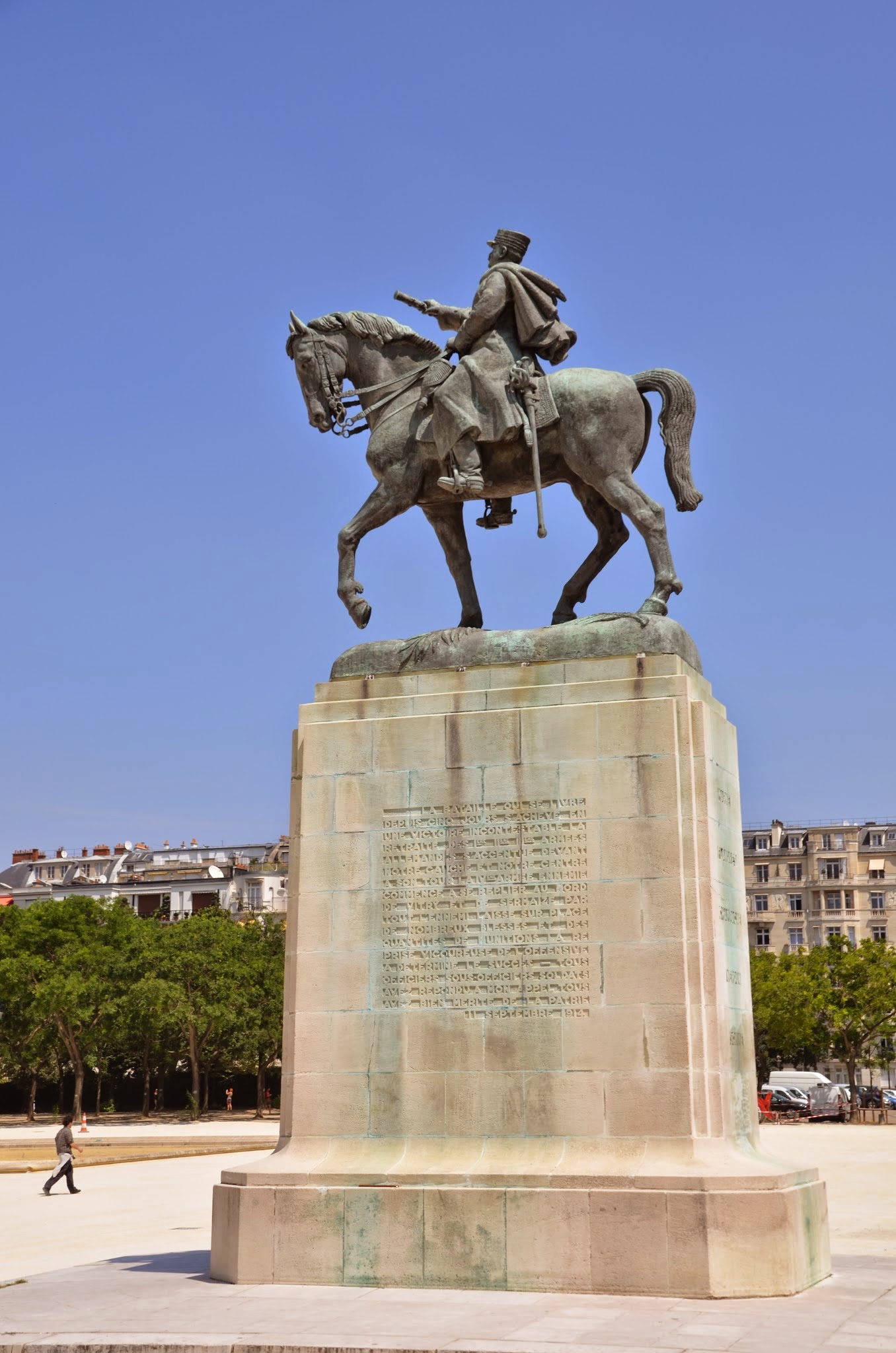 The equestrian statue of Maréchal Joffre in Paris depicts the World War I French commander on horseback, exuding strength and leadership. It’s a tribute to his military contributions. An interesting fact: Joffre was also a key advisor during the Versailles Treaty negotiations.