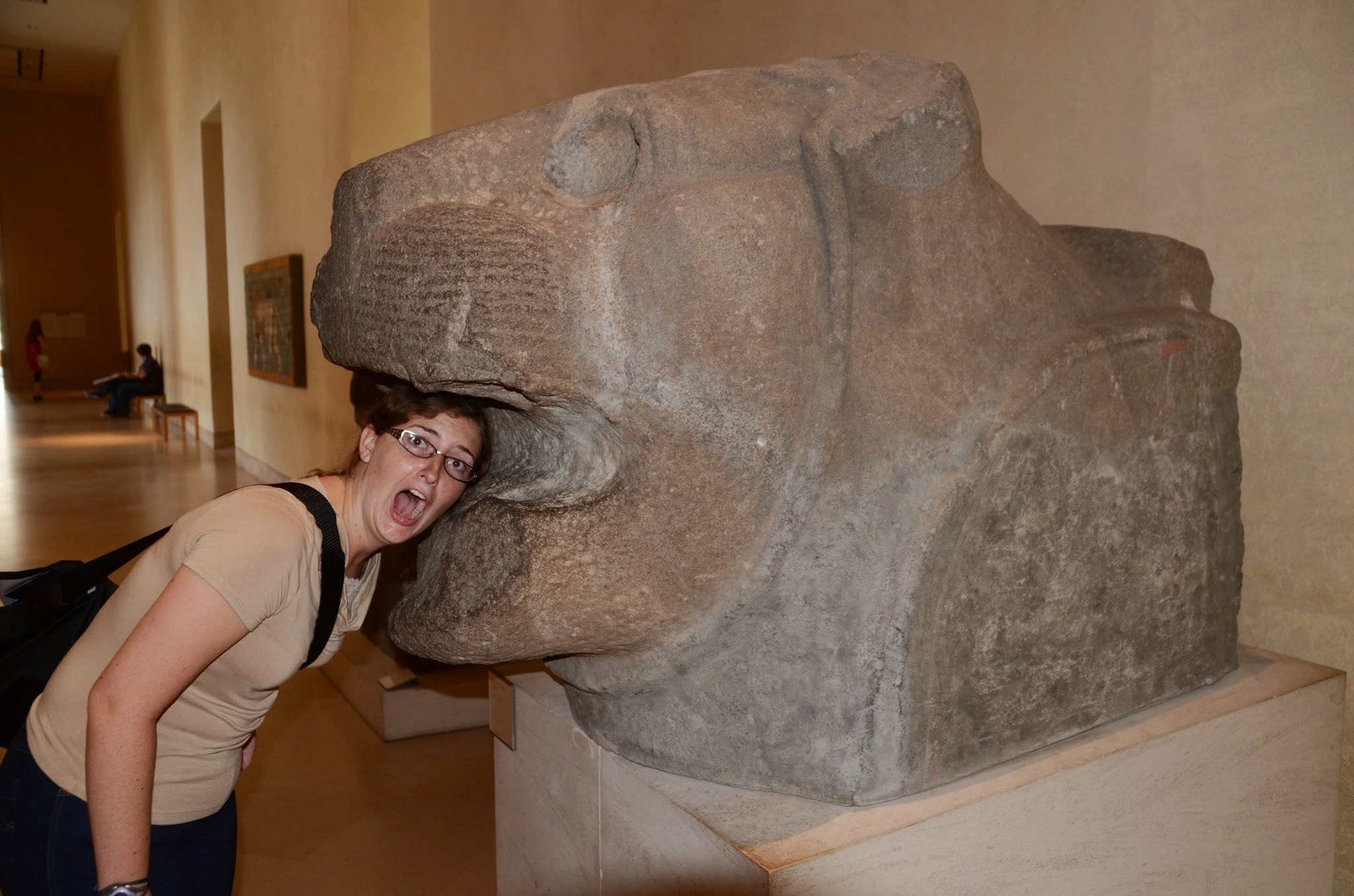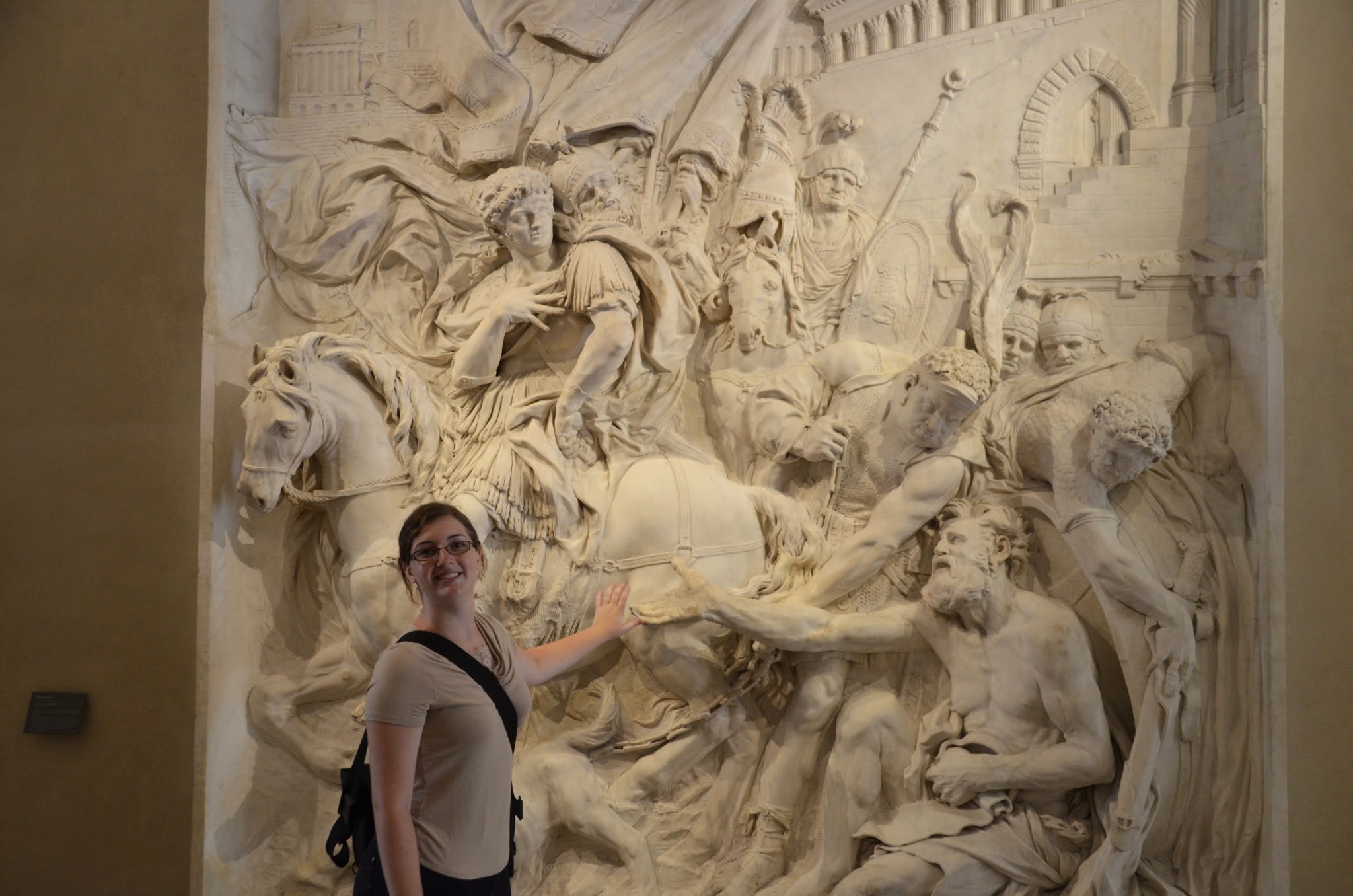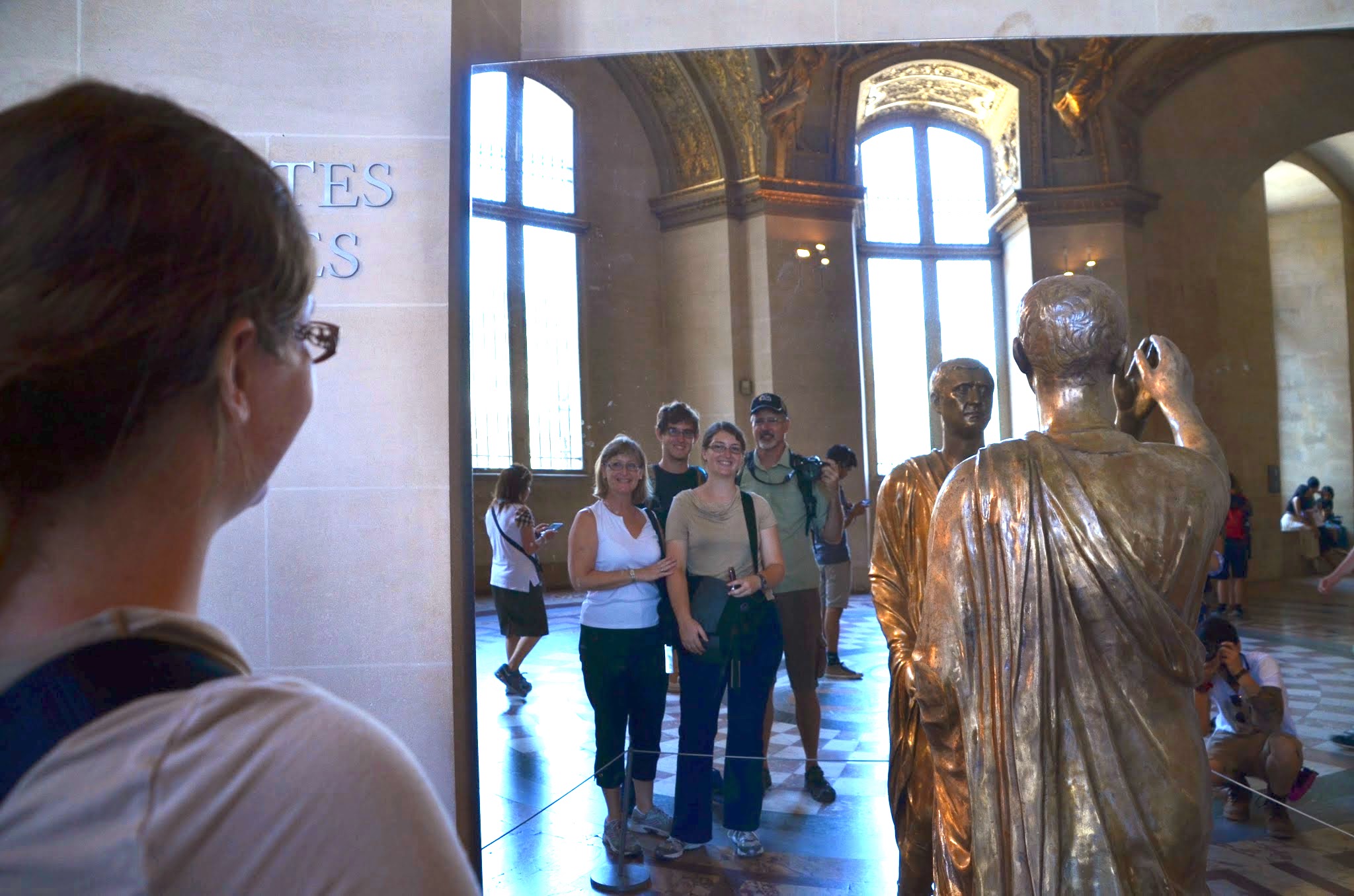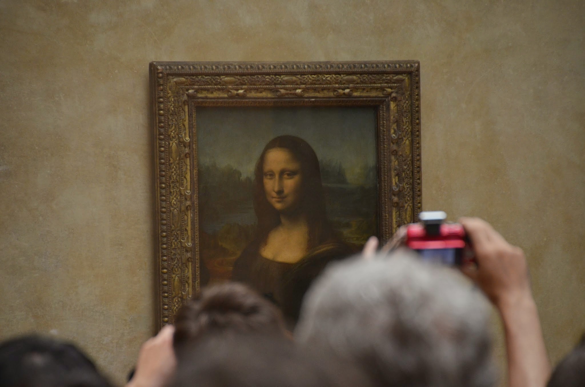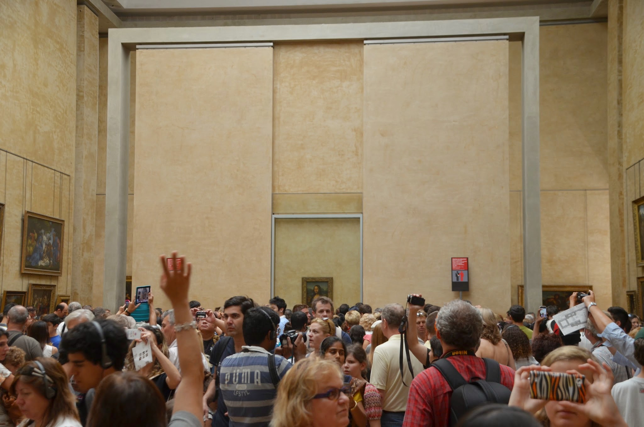 There were quite a few signs directing us to the Mona Lisa. We finally step in this massive room filled with people and at the far end there is one of the smallest paintings in the entire Lourve, but there it is.