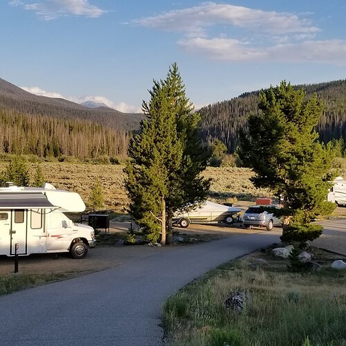 The campground is on Shadow Mountain Lake and about 5 miles from Grand Lake.