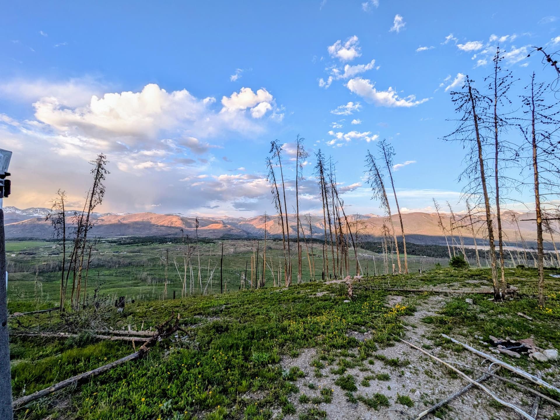 It is about 20 minutes from Grand Lake, up long winding road, half is gravel. There are probably 2 dozen disbursed sites, and the higher you drive the better the view. A trailhead long the way has a toilet. Camping is at about 9,100 feet. My only negative is the dusty road. OBTW, it is in a dead pine forest, infected by the Pine Beatle. When this place has it’s next forest fire, it will be a big one.